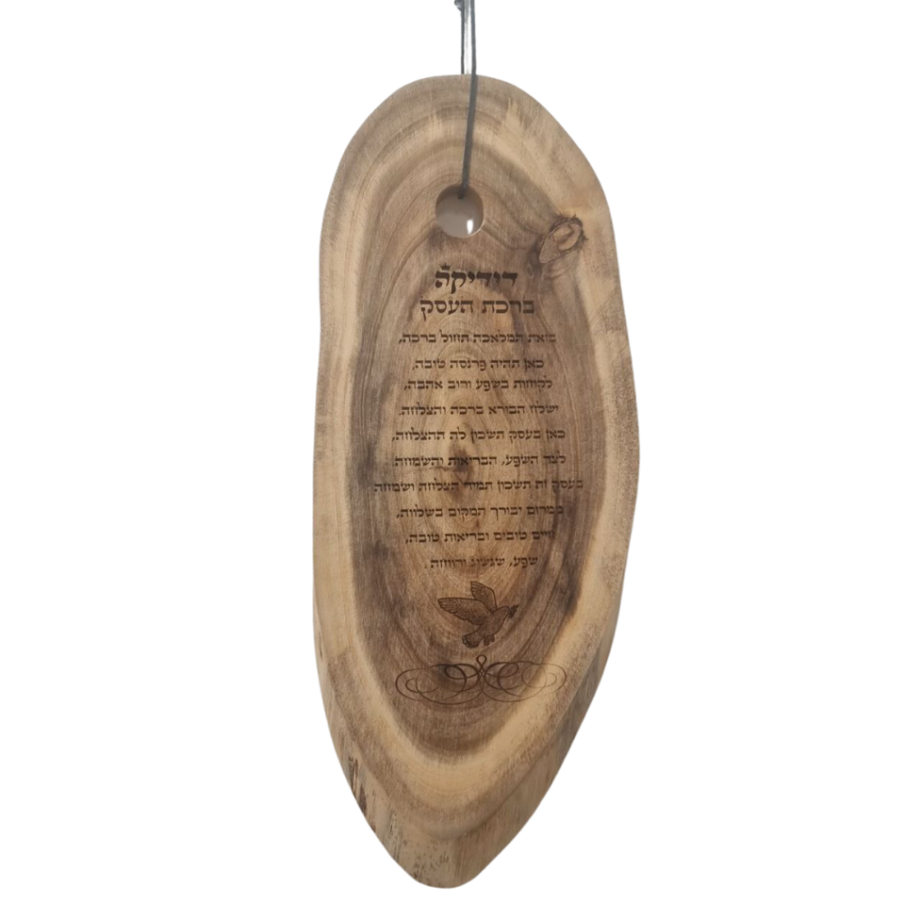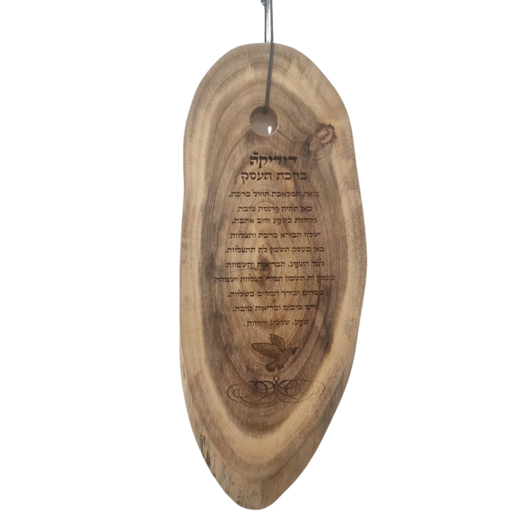 ברכת הבית מיוחדת בצורה טבעית, ייחודית ובחריטה אישית. מתנה לעסק  לתלייה על הקיר.