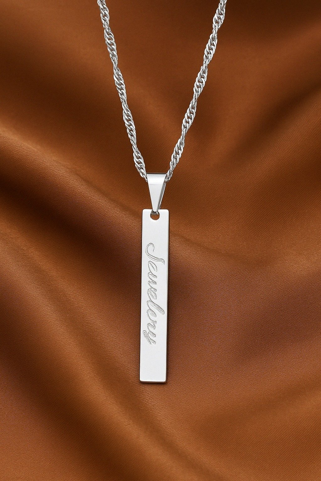 שרשרת פלטת מלבן לאורך עם חריטה אישית