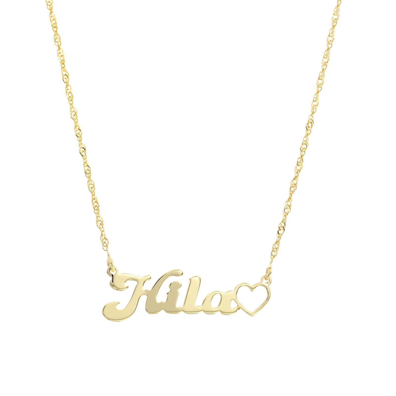 שרשרת שם עם לב חלול – כסף 925 או ציפוי זהב 14K